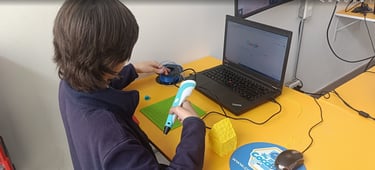 En este taller los niños diseñan sus propios modelos 3D funcionales y ampliables, desarrollando pensamiento de diseño, geometría digital y prototipos listos para impresión real, aprenden a usar impresoras 3D, reconocer los materiales e imprimen sus propios diseños, dominando diseño digital